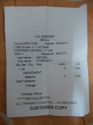 ![]() My Receipt for Picking Up the Passport with Added Pages