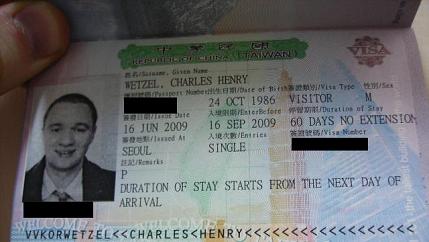 I don't actually need to have a tourist visa to enter the ROC, in fact, I don't recommend one for most tourists since it's so expensive (167,500 won for Americans at the Taipei Mission in Korea). However, it allows people like me to stay for up to two months instead of just one. What this means is theoretically, I can spend one month looking for a job, and one month after submitting all my papers to get my Alien Residency Card and Work Permit. Theoretically, I won't have to go to a third country to do visa processing.