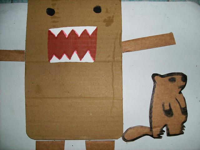 Here is a classroom game I made out of a pizza box for my students. It is called "Domo-kun versus the Groundhog" and is meant to be related to the Groundhog Day holiday (I try to have holiday themes for my in-class games). Basically Domo-kun and the groundhog have magnets on the back, and the game is played like Hangman, and as the students get things wrong, I put the groundhog on the board, then Domo-kun's legs, then his arms, and finally his body. If the students don't guess the word, Domo-kun becomes fully assembled and "attacks" the groundhog. Probably less objectionable than a man hanging from a gallows. :-)