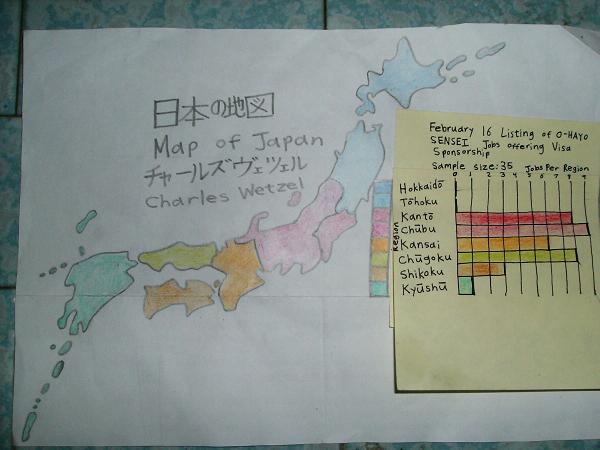 Therefore, this leaves only two parts of Japan left: south/central Honshu and Shikoku. Now, although the Kanto Area (Tokyo, essentially) had eight of the 35 job offerings, I know Tokyo is by far the most competitive. Therefore, it can be weeded out. This leaves the following places: