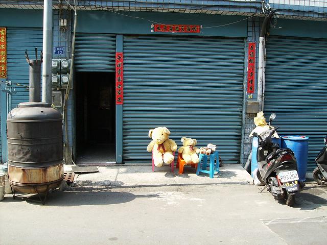 The front of my Taiwanese residence. On the left is a paper ghost money burner, and on the right, it appears that the new inhabitants of my room will be a bear family.