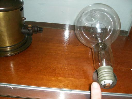 Note the 1904-era lantern. A man named Chance invented this sort of lantern; the lantern used kerosene mixed with air to create a vapor, which burned. On the right is a light bulb (note my finger for size reference).