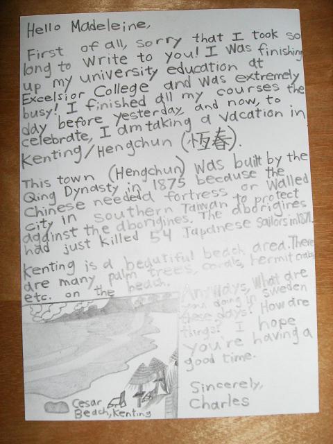 After having breakfast, I meticulously wrote the following postcards and mailed them to the respective persons in Sweden and Japan. See below for an example of a postcard with beautiful Kenting scenery. The water isn't really that brilliant blue, so my guess is that they applied some sort of filter to the camera or the image like Lomography.