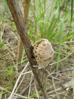 This is some sort of growth, pod, egg case, or something like that. It is not a raspberry. I not only found them on plant stalks, but also on concrete walls near the rice paddies. I wonder what they are, exactly?