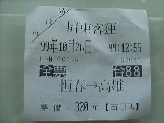 On the way back, an elderly woman wanted to board the bus, but lo and behold, the door was jammed and wouldn't open. Therefore, the bus driver opened the emergency door at the back of the bus and the elderly woman struggled to pull herself up into the bus, eventually succeeding. By around 7:00 PM, we arrived back in Hengchun. I chatted with the bus driver in Mandarin and it turned out he had been on trips to both mainland China and Vietnam, did not like the People's Progressive Party (the PPP), and preferred the nationalist KMT to them. He seemed to be relatively pro-China, but seemed to be fairly nice.