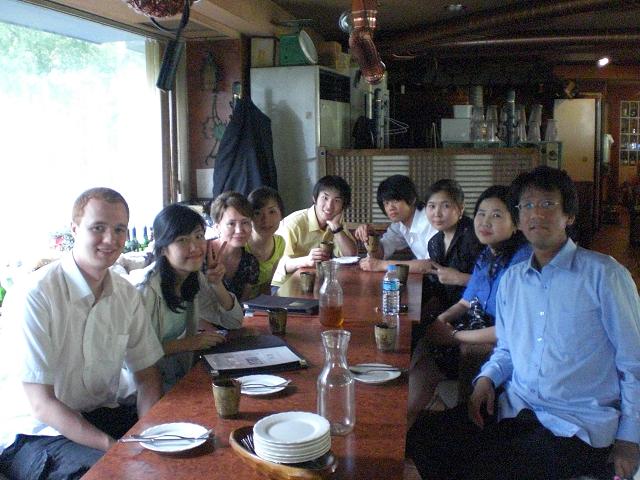 Cambridge CELTA English Teaching Certification Class (which I took between Levels 4 and 5 at Yonsei) This is me teaching an "intermediate" class, which was actually a pretty advanced class. They were a lot of fun because their English was so high level, they were quite expressive, and they sometimes caught my mistakes (particularly when I tried to teach the differences between British and American English). This is our class on the last day, at a samgyetang restaurant. However, I was unable to concentrate on the meal because I had so much overdue work to do. :-) Fortunately, I stumbled over the finish line!