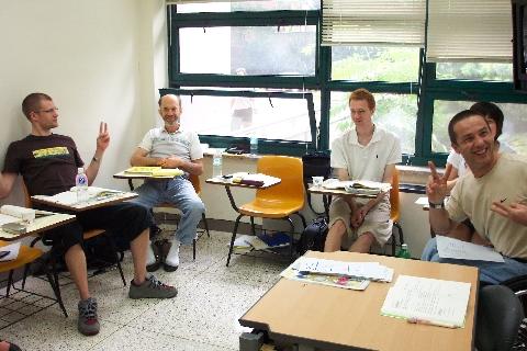 Level 1 Here's a nice one of me studying hard. I'm the redhead. By the way, the Asian is not my teacher (that's Danyang, the Chinese girl). Here's another one that has me in it. By the way, these pictures were taken by Robert M., a classmate. I figured it was fair to use them, because I'm in them.