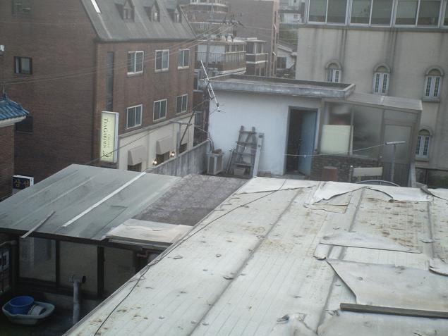 | October 24, 2007 Well, it's my birthday: exactly 21 years ago today, I was born in Bronovo Ziekenhuis in Den Haag (Netherlands). I'll eat some good food today. I don't know if I'll make it over to Yongsan Electronics Market, though. My sleep schedule is such that I'll probably be really tired after school and just sleep. Oh well, better for my wallet and studying time anyway. I'm still super scared about the test, but there isn't a whole lot I can do about it except to do the roughly three hours of audio on the Level 5 CD and read the listening passages over and over again, and study my vocab (hundreds of words). Okay, never mind, there is PLENTY to do. I thought I'd post some pictures from my hasukjip's roof that I took a couple of days ago. If it were summer, I could relieve some stress by launching water balloons off the roof onto unsuspecting 된장녀 (doenjangnyeo) below. However, it's too cold for me to do that and feel humane about it. Oh well. |
