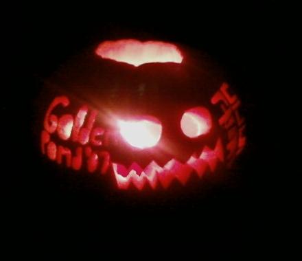 | October 26, 2007 This is the pumpkin we made, at my suggestion. It'll look nice outside the guest house. Anyways, I'm tired. Time to go to bed. |