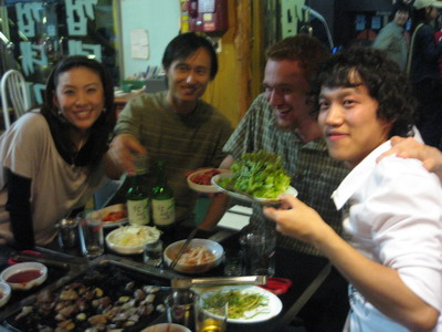 We went and had samgyeopsal at the regular place where it has been done for countless Yonsei generations, and then went to a noraebang. Most of us had something to drink, including me.