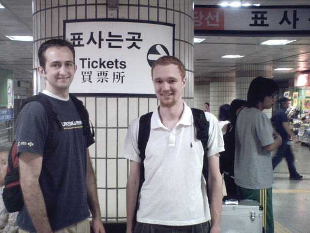 ![]() Zach (left) and Me (right) | May 26, 2007 Well, I finally met Zach today! For the thousandth time, this is NOT the dude I knew from Hong Kong International School, so PLEASE don't ask. I know this Zach from zKorean's online forums (he's MeeNam on there, and is quite knowledgeable about the Korean language). He lived in Jeolla for two years as a Mormon missionary. We ate lunch and bummed around some malls. He's getting married soon, which is why he came to Korea (his fiance is Korean). Anyways, just thought I'd update you all on that, especially since many people who visit this site are from zKorean. |
