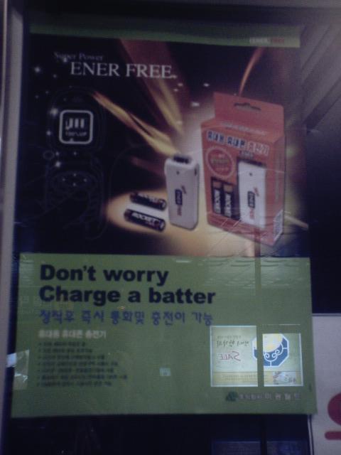 There are three different types of available water from this water cooler near Yonsei University, although only one of them is "clean." There is only one water jug, so I guess they must use caustic chemicals and rat feces to dirty the other two. The first time that I took this picture, I didn't get it quite right, so I went back and started to take a better shot, when the restaurant manager came and asked why I was taking a picture of the water cooler. I explained that I felt it was funny English, saying that the implication was that only the water from the center is clean.