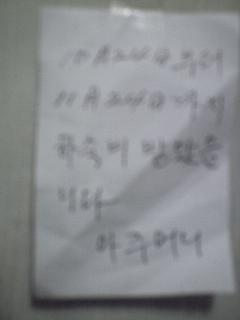 This is my formal agreement with the owners of the hasook-jib. Normally, you just give them 300,000 won in cash and there is no contract, but I insist on writing, so this is what I get (it's written on the back of a piece of scrap paper detailing the injury of someone's left hand). Here is a translation: